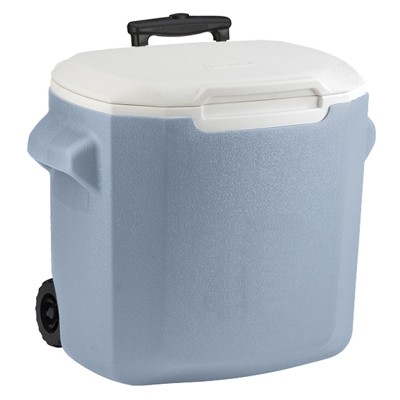 This Coleman 28 quart Coleman Wheeled Cooler holds 28 cans plus ice. It has 3 day ice rentation at temperatures up to 90F. Personalize these coleman coolers with your company name and logo to leave a lasting impression.